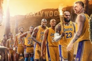 都是响当当!湖人队史球星接力:麦肯贝勒logo 勾魔鲨科詹 东契奇