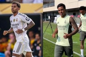 体育资讯8月5日讯 西媒《马卡报》报道称,皇马集训的第一天,罗德里戈脚穿阿迪达斯球鞋,无论是在训练场上还是训练前的设施内。